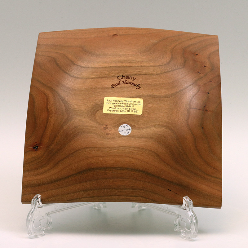 A shallow square cherry bowl with simple curves to show off the colour and character of the wood to its best. Approximate size 20cm.