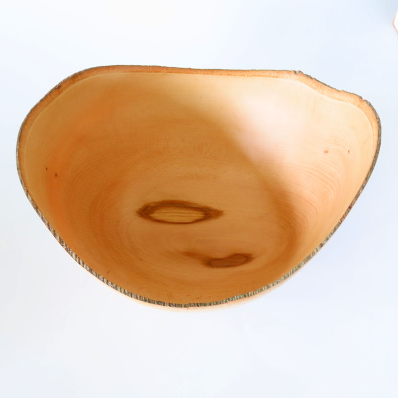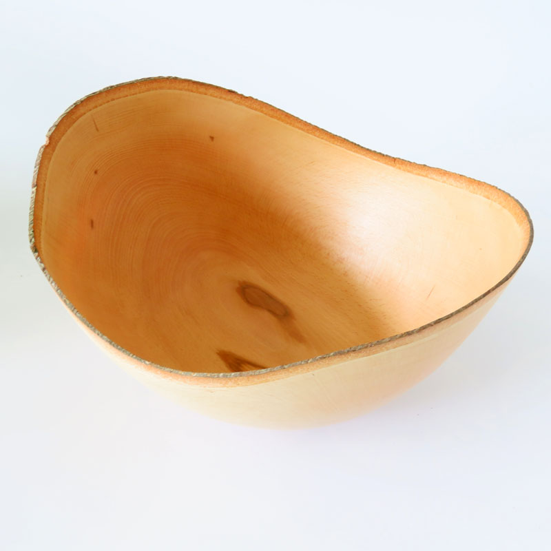 A Natural edge beech bowl turned thin when the wood was still quite fresh and wet so it has moved as it dried. Turning the bowl thin allowed it to move without cracking.