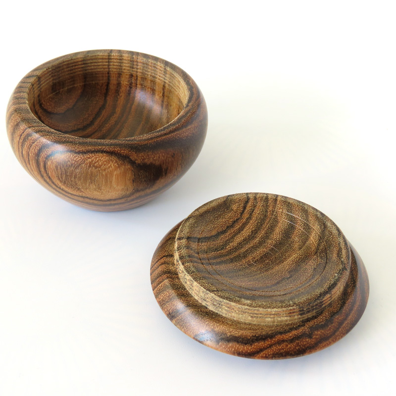 A Bocote box with a threaded lid for extra security. Diameter approx 6cm.