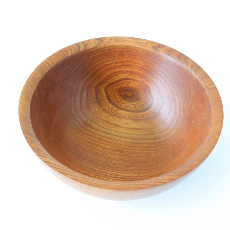 An elm Salad or food bowl with superb. natural colouring, treated with a food safe natural finish. 21cm diameter, 9cm high.