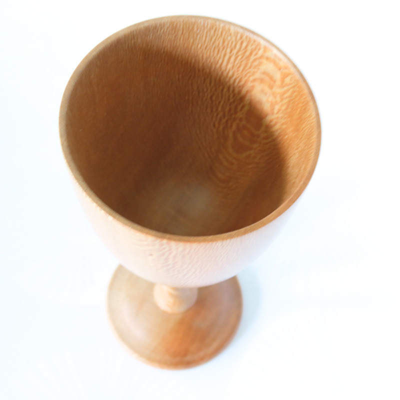 A London plane (aka lacewood) goblet with a hand carved twist stem. The finish on this goblet is not suitable for use as a drinking vessel. it is intended only for decoration. Height 16cm.