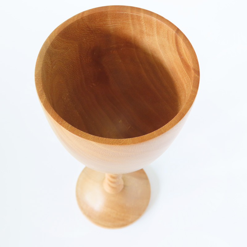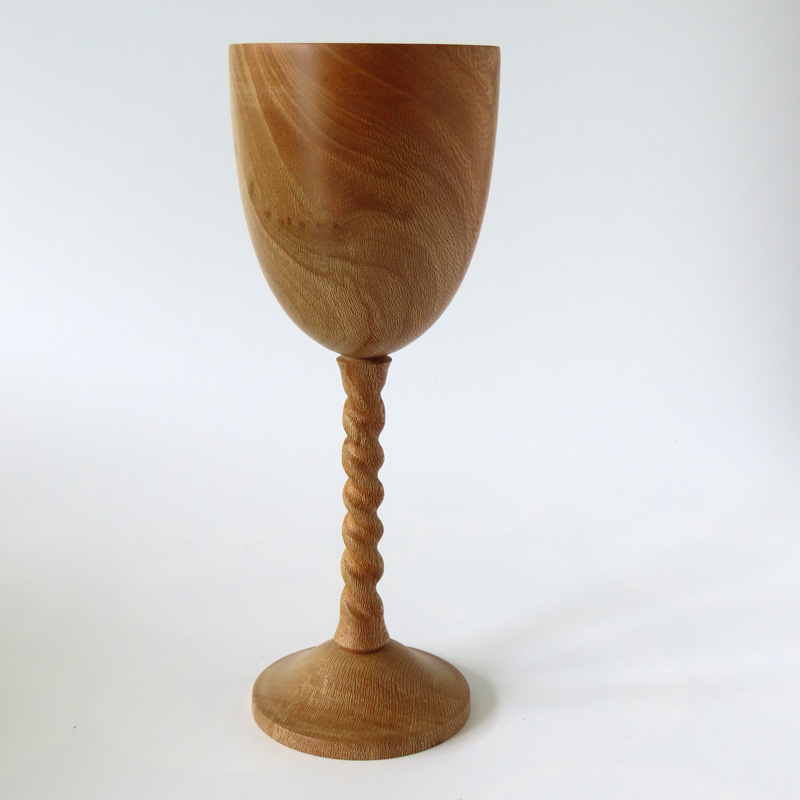 Decorative london plane (lacewood) goblet with a hand cut barley twist stem. Height 20cm. This is a decorative object and isn’t treated with a waterproof finish so shouldn’t be used to hold liquid.