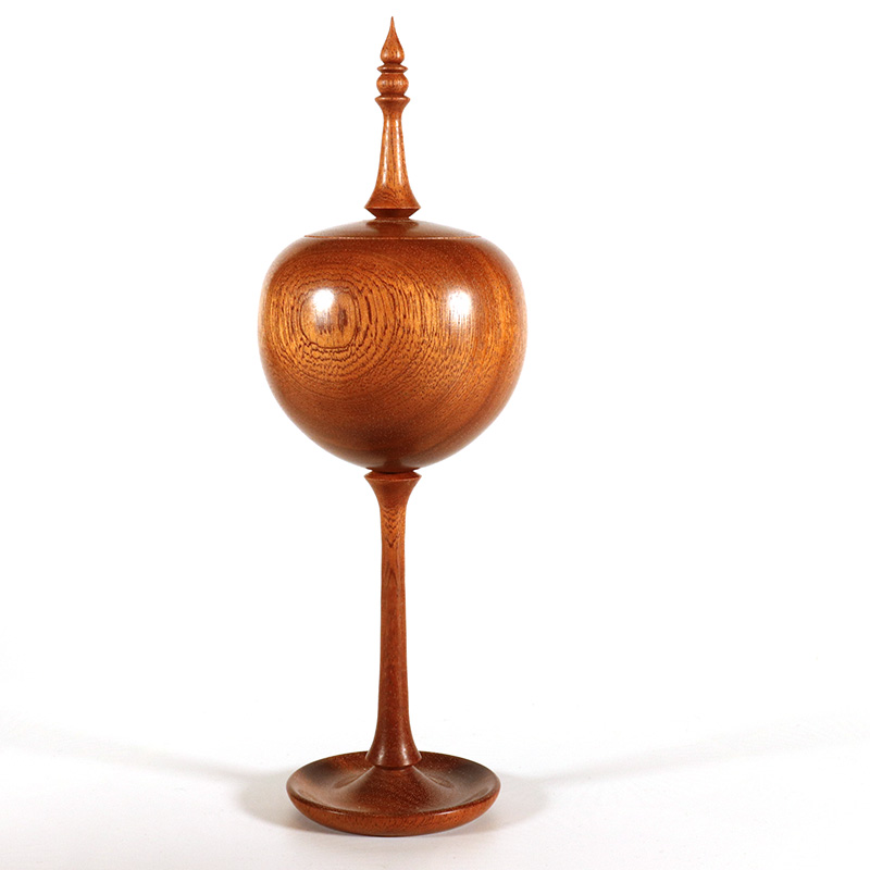 A stemmed jewellery box in mangrove wood. The foot is a shallow dish which can be used to store earrings etc. height approx 20cm.