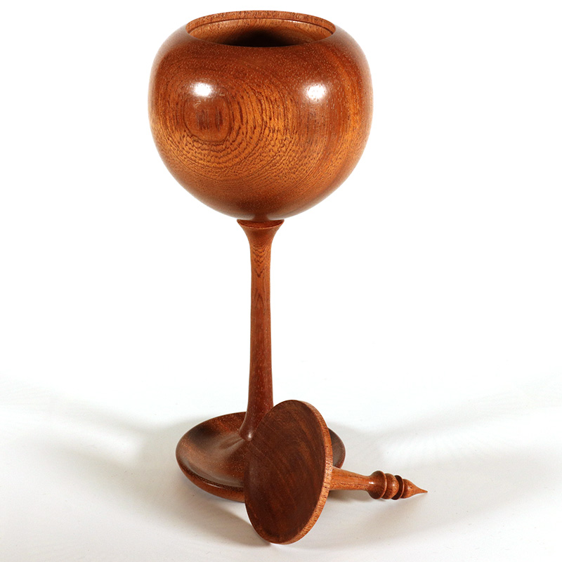 A stemmed jewellery box in mangrove wood. The foot is a shallow dish which can be used to store earrings etc.