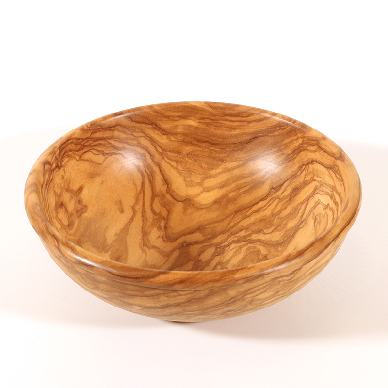 A olive wood salad bowl, treated with a food safe finish for use as a salad bowl. Size 19cm diameter.