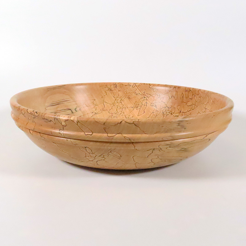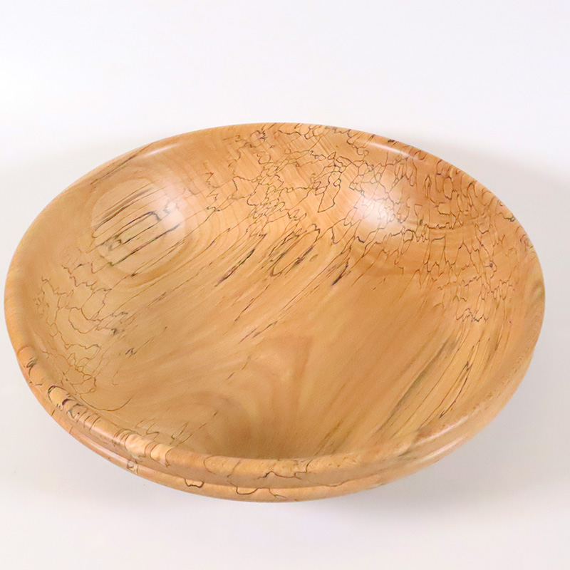 A large spalted beech salad bowl with fantastic markings from the spalting and a couple of beads on the outside for decoration and improved grip. Something of a conversation piece at the table! Diameter 35cm