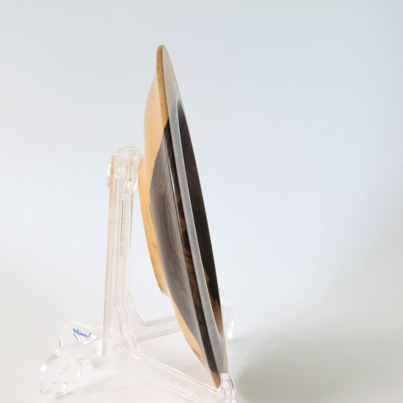 Shallow ziricote bowl with wide rim.